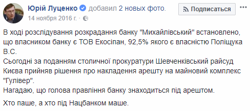 О его роли в одной из самых скандальных историй на банковском рынке Украины написано очень много. Год назад Полищук дал интервью ЛІГА.net в офисе бизнес-центра «Гулливер», который незадолго до этого был арестован с подачи Генпрокуратуры, о чем на своей странице в Facebook сообщил Юрий Луценко.