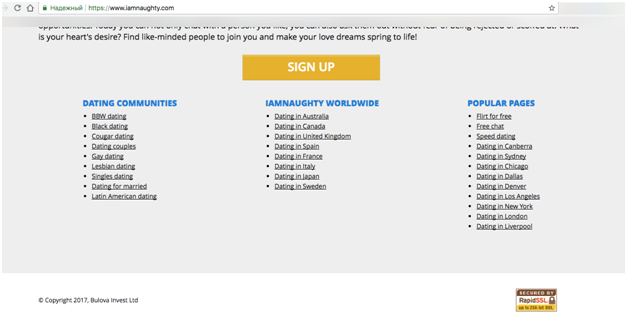 Среди проектов компании Bulova указаны сайты: Amissexy, IAmNaughty и UpForIt. Два последних входят в холдинг Together Networks со штаб-квартирой на Мальте.