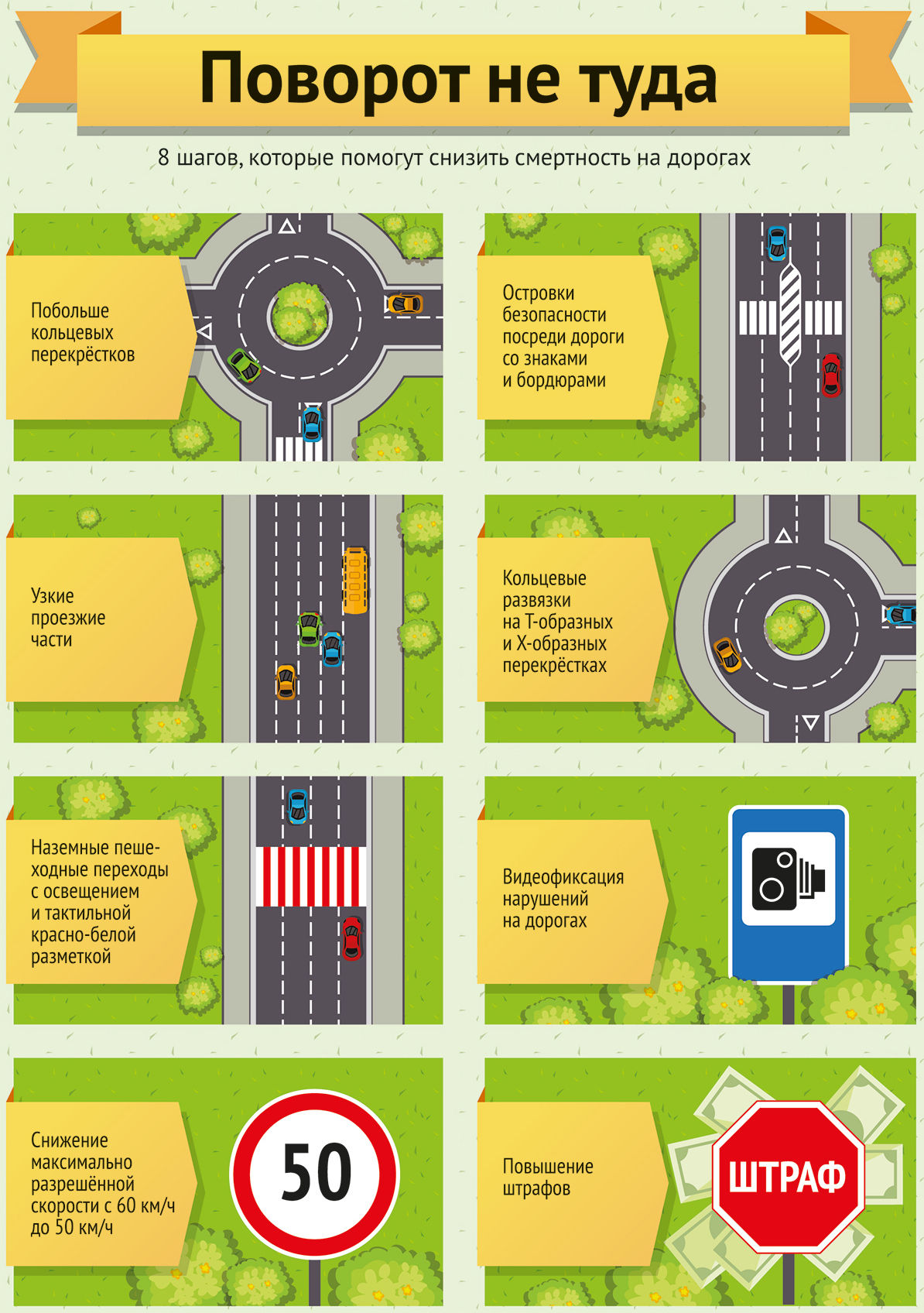 МВД решило призвать водителей к порядку драконовскими штрафами и введением видеофиксации нарушений на дорогах. Однако без коренного пересмотра подходов к проектированию дорог проблему массовых ДТП не решить. Аварийность на дорогах — это глобальная проблема. В результате дорожно-транспортных происшествий в мире ежегодно погибает более 1,25 млн человек.