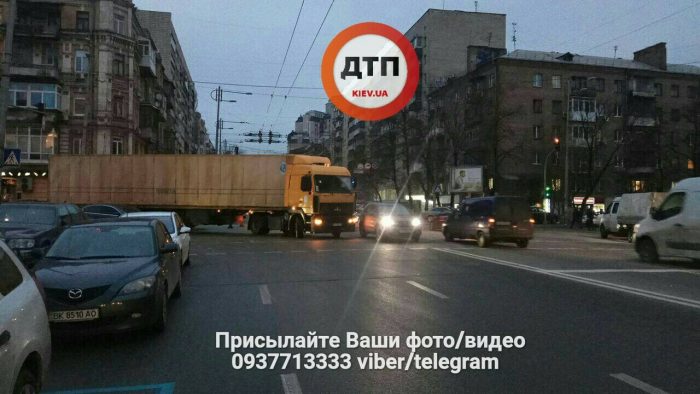 У центрі Києва, на перетині вулиць Жилянської та Льва Толстого зіткнулися маршрутне таксі та вантажівка МАЗ. Про це повідомляє спільнота dtp.kiev.ua у Facebook.