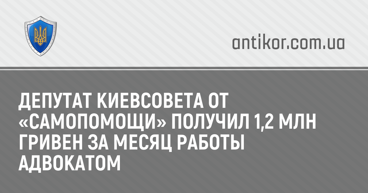 Депутат Киевсовета от «Самопомощи» получил 1,2 млн гривен за месяц работы адвокатом