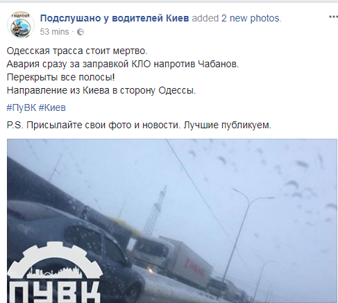Относительно неплохо движется только Столичное шоссе. На всех остальных подъездах к Киеву – коллапс. На Житомирской трассе люди бросают машины и идут пешком. Дороги в селах не расчищены. На Черниговской трассе – длинная тянучка. "Стоят" Гостомельское и Одесское шоссе, а также Кольцевая дорога.