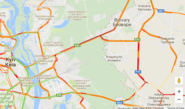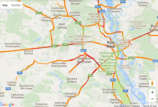 Аналогично стоят в пробках дороги на пригород в сторону Броваров и Вишневого.