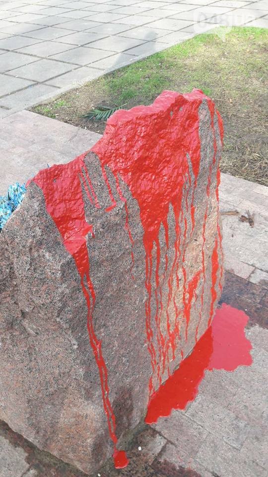 23 декабря в Одессе вандалы облили красной краской памятный знак бойцам АТО.