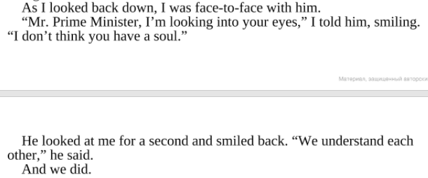 Личности Владимира Путина в книге посвящен еще одна интересная зарисовка. Байден описал, как на одной из встреч, еще в бытность Путина премьер-министром России, он посмотрел в его глаза и сказал ему: «Я не думаю, что у вас есть душа», на что российский президент якобы ответил: «Мы понимаем друг друга».