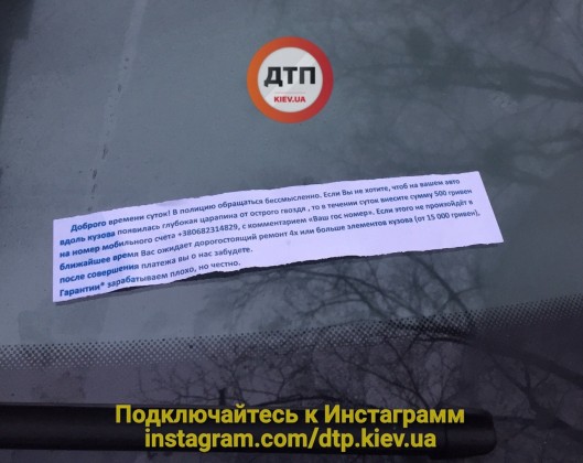 В Сети сообщают о массовом распространении записок с угрозами водителям и «просьбой» перечислить 500 грн.
