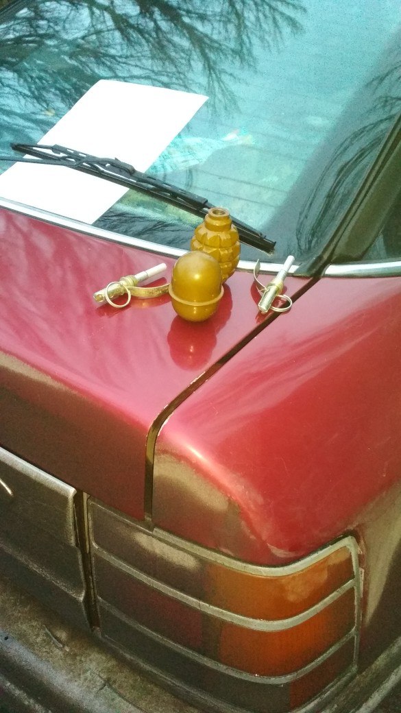 Изначально в тексте публикации была информация о том, что у водителя при обыске обнаружили две гранаты и камуфляжную куртку. Позже эта информация была удалена из поста, но фото гранат осталось.