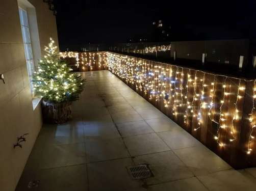 На террасе у Сергея также царит новогодняя атмосфера. Многочисленные огоньки создают невероятное ощущение волшебства.