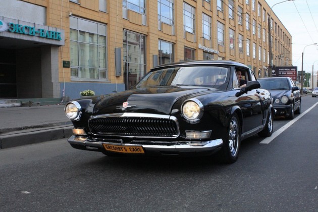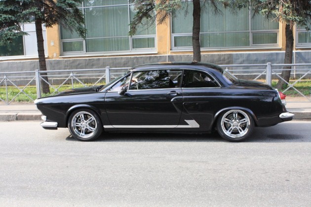 Peugeot 407 Coupe переделали под уникальный ГАЗ-21 Волга. Если бы не необычно низкая крыша, то спереди и сзади автомобиль можно было бы легко спутать с обычной «двадцать-первой».
