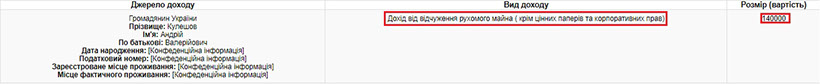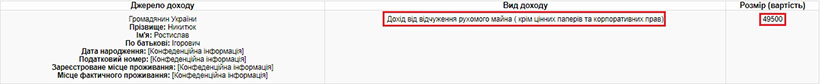 У цій же декларації про зміни в майновому стані Ігор Козак повідомляє і про продаж рухового майна вартістю 140 000 грн. Подібну декларацію за тиждень до цього подає і сама Людмила Галіян, де вона також повідомляє про відчуження рухомого майна, але значно дешевшого – вартістю 49 500 грн.