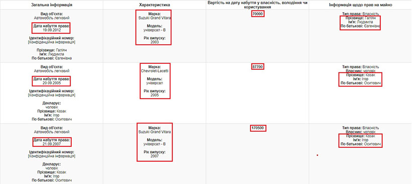 Враховуючи, що єдиним рухомим майном у власності Людмили Галіян є автомобіль Suzuki Grand Vitara 2003 року випуску, можемо припустити, що проданий був саме він. А ось дізнатися, що саме продав Ігор Козак ми зможемо лише після подання суддями декларації за 2017 рік, адже у власності судді у відставці є 2 автомобілі: Chevrolet-Lacetti 2005 року випуску та Suzuki Grand Vitara 2007 року.