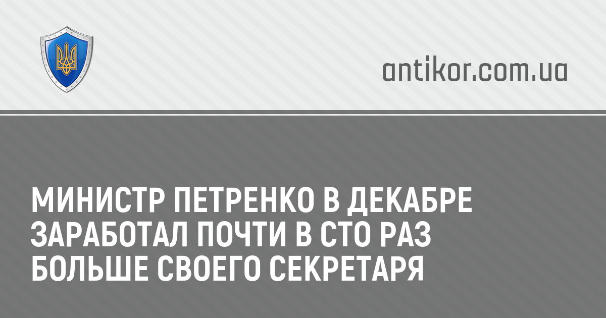 Министр Петренко в декабре заработал почти в сто раз больше своего секретаря