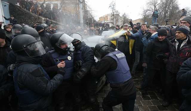 Митингующие под Радой применили слезоточивый газ и брусчатку против полиции