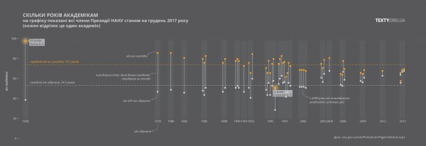 Під цією публікацією підписався й академік Борис Патон – який з 1961-го року і донині займає посаду голови Національної Академії наук України. Вимагати від 99-річного Патона жвавості у прийнятті рішень та реформ ніхто й не намагається. Колеги по президії уже й самі не перший рік на пенсії, і з поваги до визначного науковця критикувати голову НАНУ не наважуються.