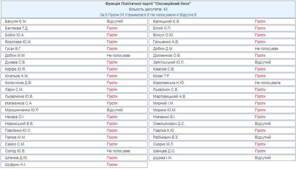 Из 36 нардепов, которые проголосовали "против", 33 - представители "Оппозиционного блока". Еще четверо воздержались.
