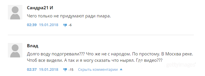 Российских пользователей разозлила эта новость. Они заметили, что из воды шел пар. Кроме того, люди начали требовать видеоподтверждение купания.