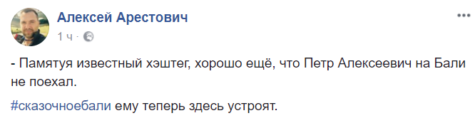"Памятуя известный хэштег, хорошо еще, что Петр Алексеевич на Бали не поехал.