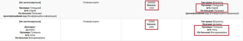 Проаналізувавши декларації Сергія Гулицького за 2014, 2015 та 2016 роки виявили, що його дохід за 3 роки склав – 1,2 млн грн. У той час його дружина, Алла Володимирівна Гулицька, не задекларувала жодної гривні доходу.