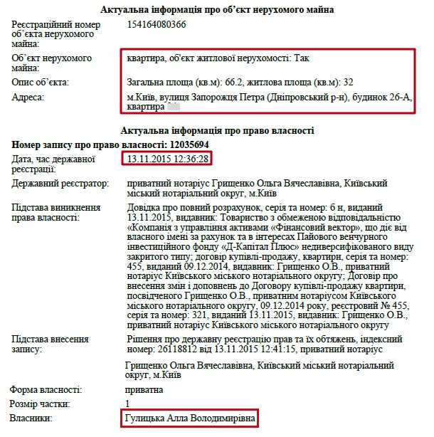 У липні 2015 року дружина прокурора продала цю квартиру. І все б нічого, але цієї квартири ми не знайшли у декларації Сергія Гулицького за 2014 рік. А у декларації за 2015 рік немає жодного доходу від її продажу. Якщо за недекларування за 2014 не було кримінальної відповідальності, то те, що дохід від продажу квартири у 2015 році не вказано у декларації, є підставою для реєстрації кримінального провадження.