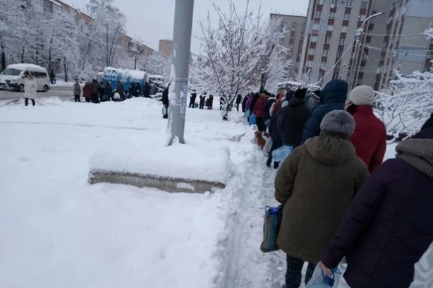 Більш того, на вулицях міста спостерігається ажіотаж: люди утворюють довгі черги до цистерн, які підвозять питну воду в різні мікрорайони Черкас.