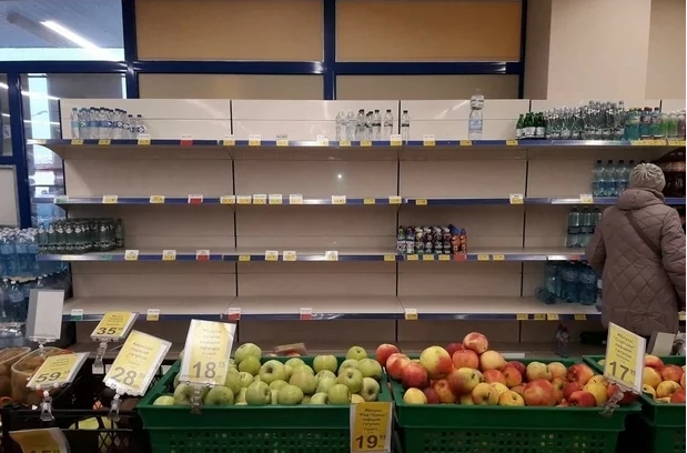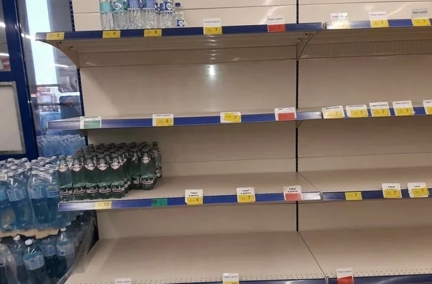 «..причиною цього є паніка, що виникла в результаті оголошення надзвичайного стану. На полицях магазинів залишилася тільки газована й мінеральна вода. Також залишилася імпортна вода, вартість якої сягає 90 гривень за літр», – відзначають вони.