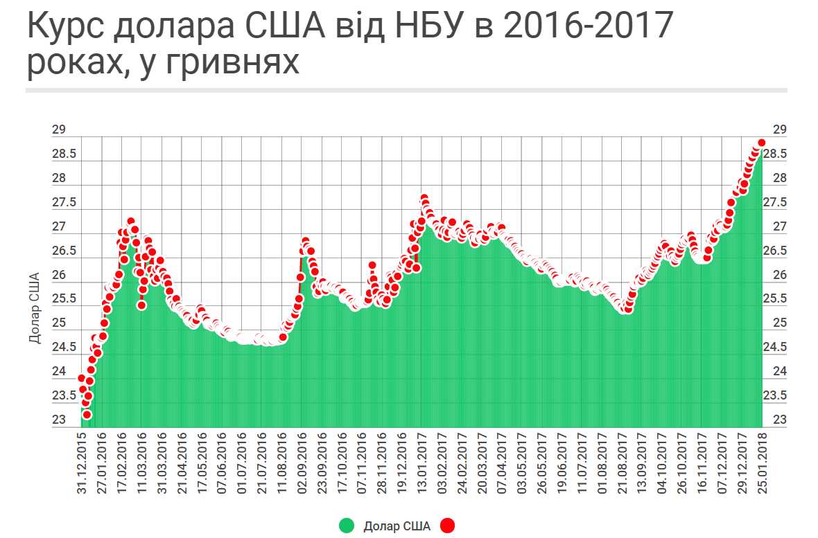 По прогнозам правительства, обменный курс гривни (в среднем за год) в 2018 году составит 29,3 грн за доллар, в 2019 году - 30,5 грн за доллар, в 2020 году - 31 грн за доллар.