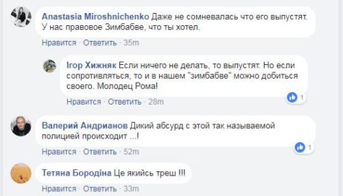 “Мы за полицию сделали все!!! Собрались более 35 мужчин, взяли видео, фото, установили личность, адрес проживания, чуть ли не за ручку его привели в полицию, а они его просто взяли и отпустили!!!! Скажу так, если до понедельника не будет результата, тогда соберется мужская часть городка и других районов Киева (думаю, несколько сотен парней будет) и тогда пойдем в Соломенское управление полиции, или центральное управление полиции, помогать им изучать законы и учить работать, а не отпускать маньяков на свободу, где ходят наши жены и несовершеннолетние девочки!”, – пишет Роман.