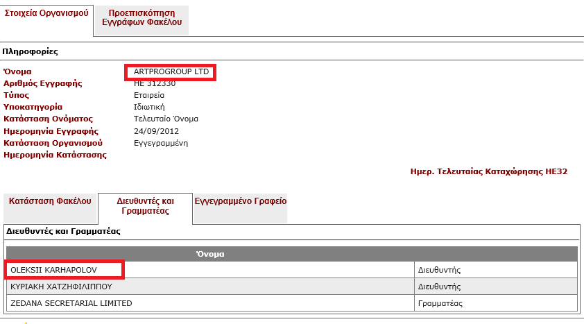 Упомянутый оффшор Lanex Inс был оформлен на Евгения Балушку, который назывался бенефициаром Украинского профессионального банка (УПБ). А главой правления этого банка до выведения его с рынка в 2015 году был Алексей Каргаполов, который сейчас, про данным «ОЛИГАРХА», числится директором Artprogroup Ltd.