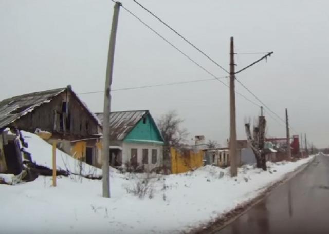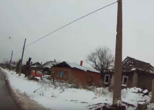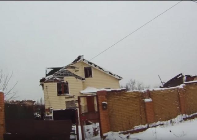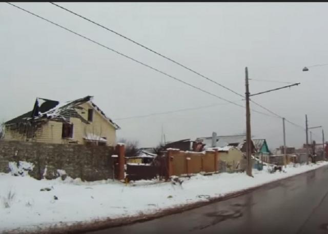 На улице, приближенной к горячей точке Донецка — аэропорту много поврежденных и заброшенных домов. В снимках видны в прошлом роскошные дома, посеченные осколками и полуразрушенные, некоторые уже превратились в руины.