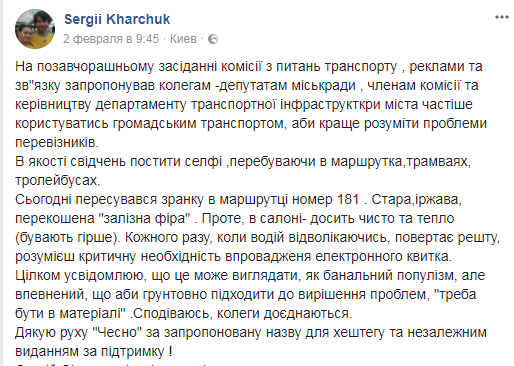 Первым фото из транспорта опубликовал сам Харчук. Он проехался в маршрутке №181.