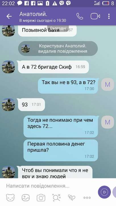 "В вайбере фото бойца, украинский флаг, все как должно быть.