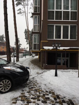 Хороший пример на днях привел автоюрист Вадим Володарский. Он сфотографировал, как возле многоэтажки в Ирпене заряжали Nissan Leaf. Чтобы «дотянуться» к зарядному кабелю, хозяину пришлось подогнать автомобиль поближе к дому, заняв часть тротуара.
