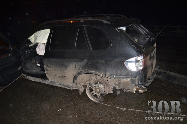 Примерно в 18.00 на Новом мосту в Днепропетровске пьяный водитель на автомобиле BMW X5 выехал на полосу встречного движения где по касательной допустил столкновение с автомобилем Skoda, а позже, лобовое столкновение с автомобилем Hyundai.