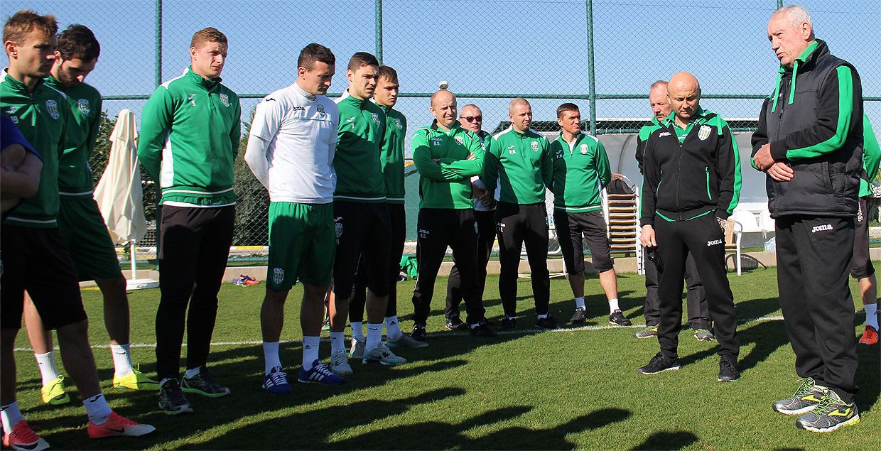 "Утренняя тренировка "зелено-белых" началась встречей команды с почетным президентом ФК "Карпаты" Петром Дыминским", - написано в сообщении.