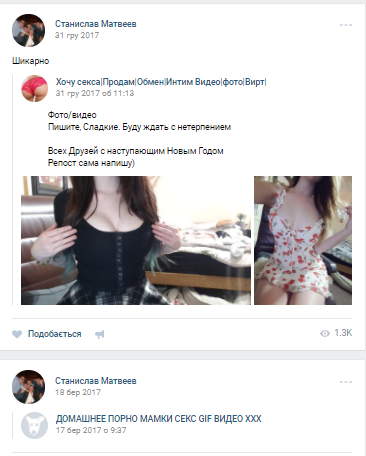 Похоже, что убитый наемник вообще очень любил "пошалить". На его странице есть масса порно и записей из групп секс-знакомств. Как ни странно, но супруги погибшего Елены в списке друзей мы не обнаружили.