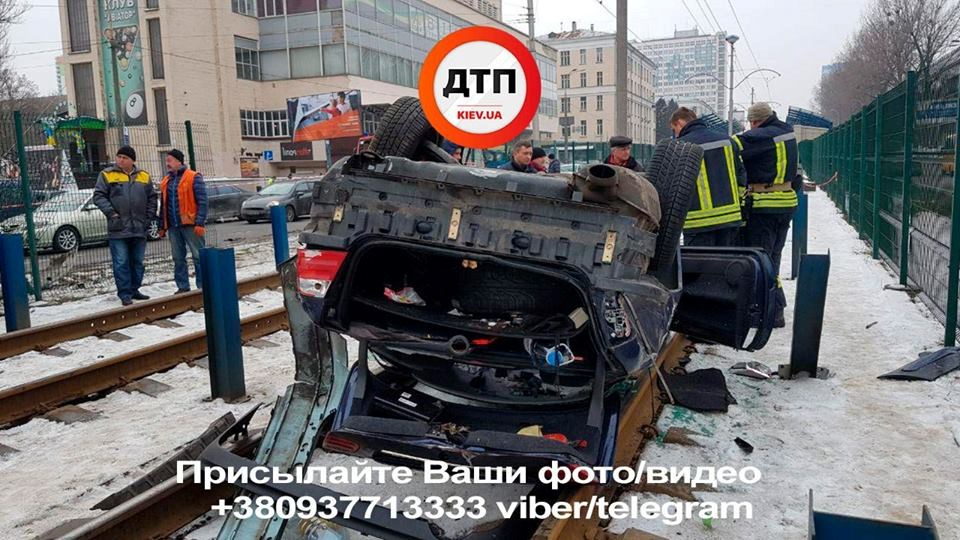 Авто опрокинулось на рельсы: в Киеве иностранцы устроили масштабное ДТП и сбежали
