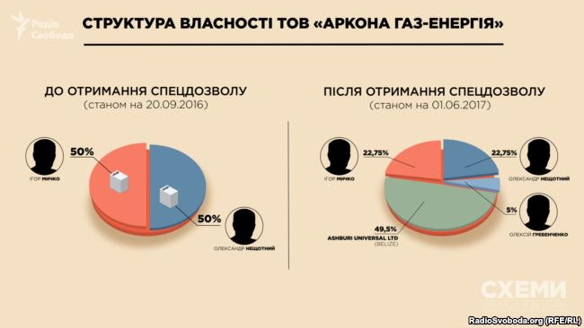 Але вже за два тижні після того, як «Аркона Газ-Енергія» успішно отримала спецдозвіл, у неї з’явилися нові співвласники. Сталось це 1 червня 2017 року.