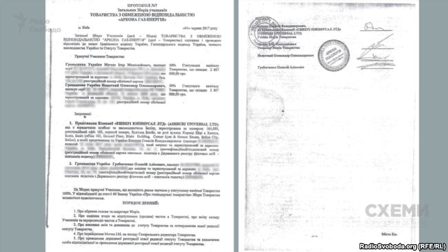 Редакція програми «Схеми» дістала копії протоколу загальних зборів учасників та нову редакцію статуту «Аркона Газ-Енергія» від 1 червня 2017 року. Відповідно до цих документів, белізький офшор Ashburi Universal LTD на загальних зборах учасників товариства представляв Олексій Бондар – адвокат «Ековіс Бондар і Бондар юридичне бюро», де, до слова, працював і Олексій Гребенченко – новий власник 5% частки в «Арконі».