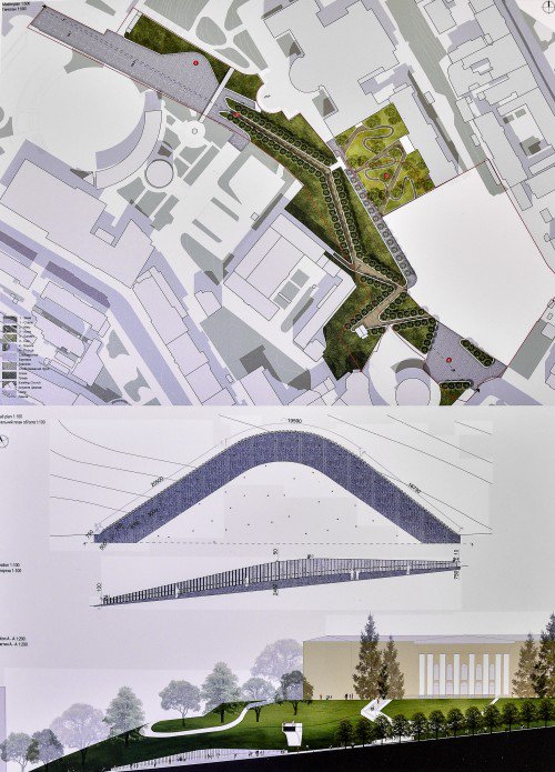 «Победителем стал эскиз, где аллея разделена на две части. Это что-то вроде интерфейса Майдана. Здесь есть аллея, вымощенная брусчаткой, где происходили события на холмах. Есть пространство, заложенное в этот холм для того, чтобы создать арку. Перед этой аркообразной стеной все временные и спонтанные монументы, которые бы объединились в одном месте. Это место памяти, это место, где можно прийти, положить цветы, зажечь свечи, где можно побыть вместе, объединиться», — отметил председатель жюри конкурса «мемориал Героев Небесной сотни» Бенжамин Хоссбах.