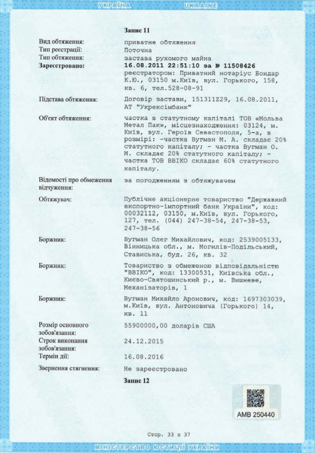 По данным Минюста, опубликованным на сайте Высшего хозяйственного суда Украины (после судебной реформы он называется Кассационный хозяйственный суд, но сайт носит прежнее название), 1,5 млрд гривен государственному банку должны: Вугман Михаил Аронович (проживает в Киеве), Вугман Олег Михайлович (из Могилева-Подольского), а также ООО “Ввико” (зарегистрировано в Вишневом, Киево-Святошинский район Киевской области).