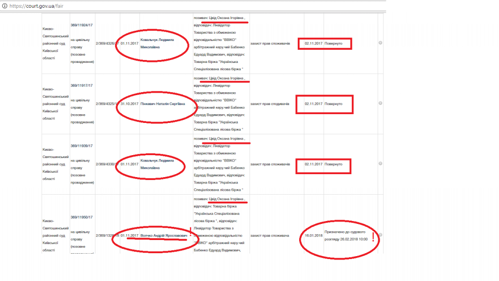 Второй подход Эдуард Бабенко осуществил осенью. 17 октября 2017 года на сайте ВХСУ было размещено объявление о проведении торгов имуществом банкрота ООО “Ввико”, которые были запланированы на 8 ноября. Организатором значилась киевская товарная биржа “Украинская специализированная лесная биржа”.