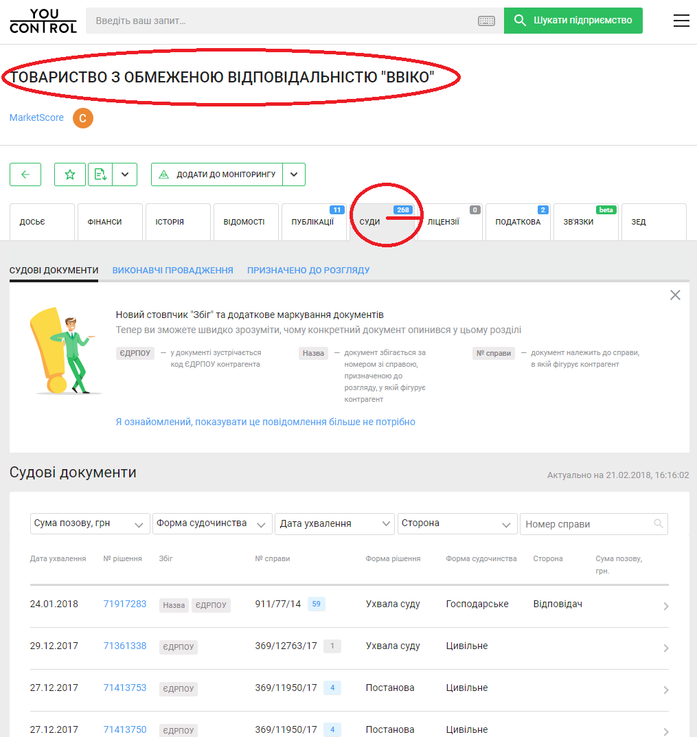 Эту гипотезу подтверждает количество судебных решений по ООО “Ввико” в разделе “суды” в аналитической системе YouControl.