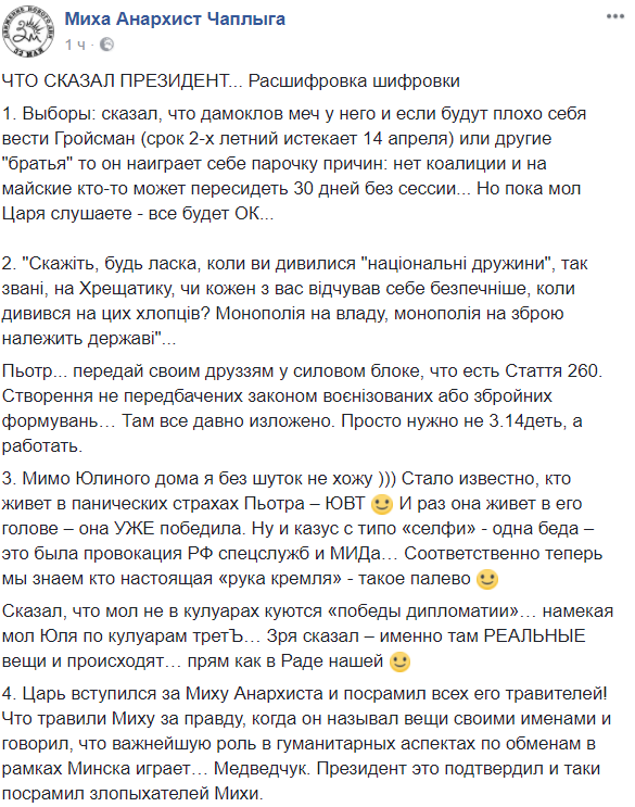 Политолог Михаил Чаплыга сделал собственный разбор главных, с его точки зрения, тезисов гаранта.