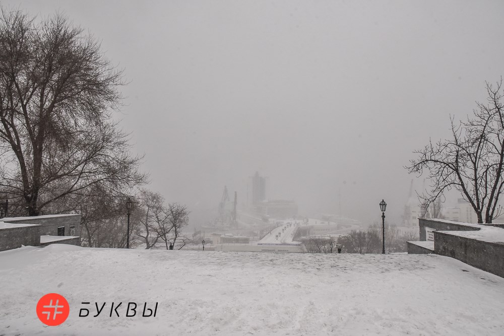 В Одессе сильный ветер образовал сугробы на дорогах.