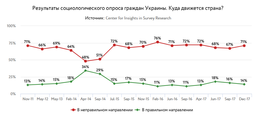 И вот здесь у украинской власти начинаются серьезные проблемы. Большинство населения не доверяет власти почти во всех ее проявлениях. Суды, прокуратура, Верховная Рада, премьер-министр, президент имеют уровень недоверия 70-90%.Украинцев, которые считают, что страна идет не туда, почти в 5 раз больше, чем положительно оценивающих вектор движения.