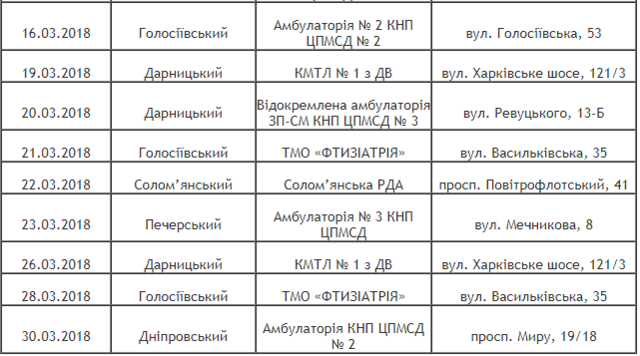 До кінця березня всі бажаючі зможуть безкоштовно обстежитися на пересувному флюорографі. Пройти таке обстеження можна буде в будь-якому районі Києва, попередньо ознайомившись з графіком роботи флюорографа. Після обстеження кияни зможуть отримати довідку з результатами і кваліфіковану консультацію лікаря-фтизіатра.