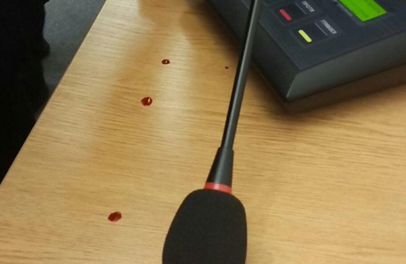 После этого начальник управления по вопросам обращений граждан Игорь Верига вынес из зала эти "подарки", затем вспыхнул конфликт и драка.