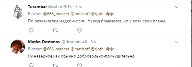 «По результатам медкомиссии. Народ брыкается, но у вояк свои планы».