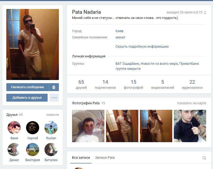 “А знаєте, що найгірше. Що 25 та 26 серпня всі ці матеріали були надані у СБУ, зі скріншотами та архівами сторінок в ВК, з геотегами, фотографіями та іншими доказами. І до цього дня він ходить… та насолоджується життям на території так званих “укропів”, а може, вже і втік, так як пройшло чотири доби.