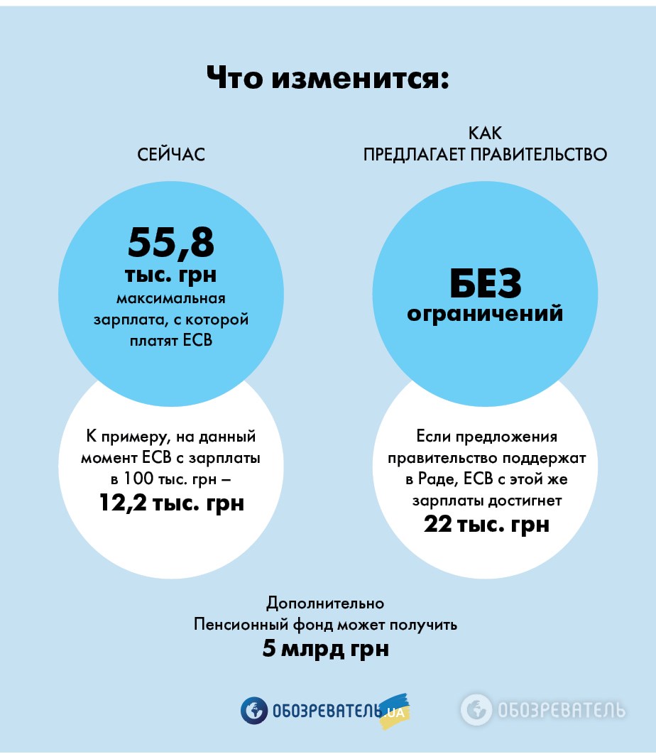 То есть в правительстве предлагают ставку ЕСВ на сумму, например, выше 55,8 тыс. гривен, установить ниже 22%. Но платить при этом придется, даже если размер зарплаты достигает миллиона гривен.